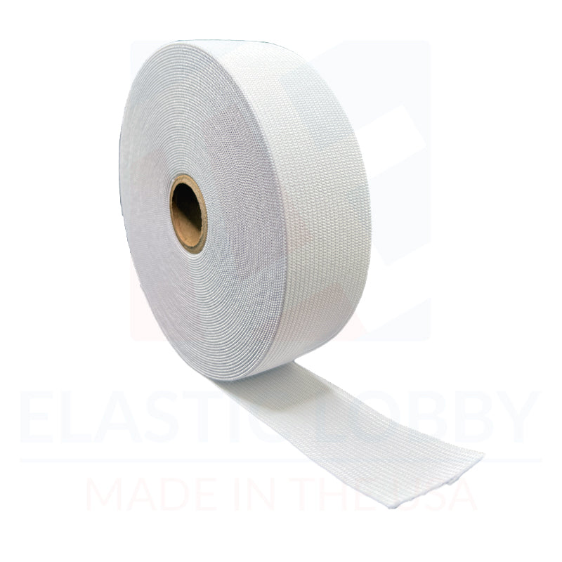 This 1.5" (38mm) White Knitted Elastic is manufactured with a combination of polyester and natural rubber. Made in the USA, this knitted elastic offers reliable performance for your projects.